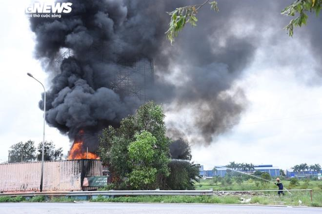 Tại hiện trường, 2 xe tec chở xăng dầu, khu vực xung quanh chỗ đậu của 2 xe cùng nhiều thùng phuy bị cháy đen. Tuy nhiên, đến 10h30, ngọn lửa bùng phát trở lại, lực lượng PCCC lại căng mình dập lửa.