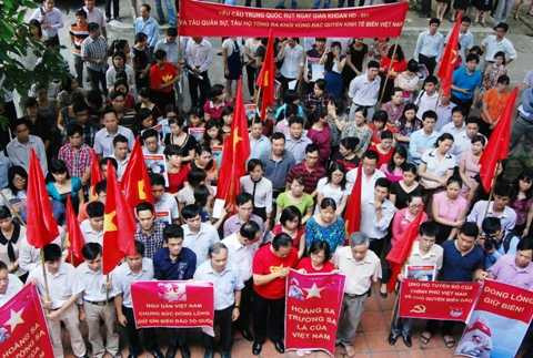 Sáng 14/5, tại Hà Nội, Trung ương Hội Nghề cá Việt Nam đã tổ chức buổi mít tinh kịch liệt phản đối hành động của Trung Quốc xâm phạm của quyền biển đảo của Việt Nam, yêu cầu Trung Quốc rút ngay hoạt động xâm phạm.