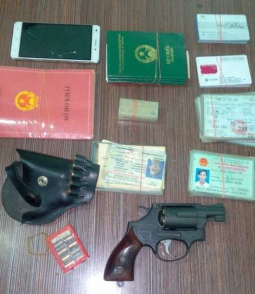 Qua khám xét nơi ở của đối tượng, phát hiện và thu giữ 1 súng rulo, 27 viên đạn, 15 chứng minh nhân dân, 8 giấy phép lái xe, 13 giấy đăng ký xe, 1 hộ khẩu, 8 thẻ ATM, 1 điện thoại, 1 laptop.