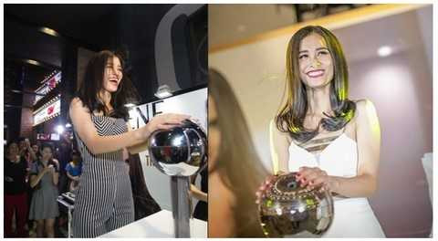 | Lần trải nghiệm thứ nhất (ảnh trái), mái tóc Đông Nhi đã tích cực “tung bay” khiến cô không khỏi bất ngờ; trong khi lần thứ hai chạm tay vào quả cầu, lượng tóc hư tổn bị dựng lên đã giảm đi đáng kể. |