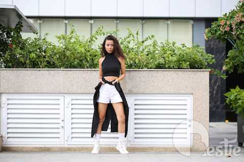 | Với lợi thế ngoại hình cao ráo, thon thả, Lại Thanh Hương đã phối giày gladiator với áo crop-top, quần shorts ngắn cùng tông và đặc biệt là chiếc áo kimono xuyên thấu. |