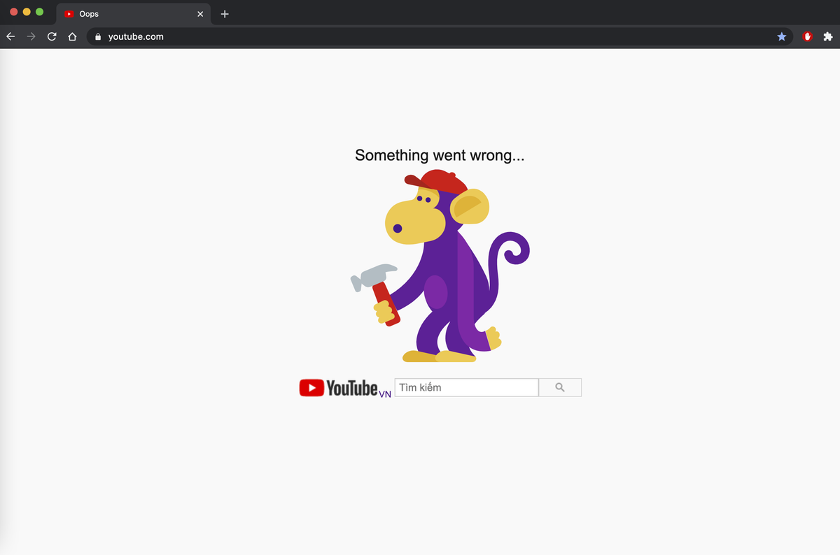 Thông báo lỗi khi truy cập YouTube.