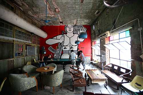 Đi sâu vào trong con ngõ thoáng đãng và rộng rãi, tôi ngước nhìn dãy nhà cũ kỹ hai bên bằng ánh mắt lạ lẫm. Khu tập thể khá lớn với khoảng sân rộng, nhà san sát nhau, kiến trúc không có gì đặc biệt nhưng nổi bật nhờ vẻ cũ kỹ, rêu phong. Dưới tầng một, lác đác có một vài cửa hàng quần áo, café… điểm chung là không gian rộng, thiết kế và bài trí theo phong cách lạ mắt và “không đụng hàng”. Một vài cửa hàng đang trong thời gian hoàn thiện nội thất, gạch đá, vôi vữa ngổn ngang. Nhìn một góc sân, không ít người lầm tưởng rằng mình lạc vào một công trường xây dựng.